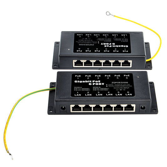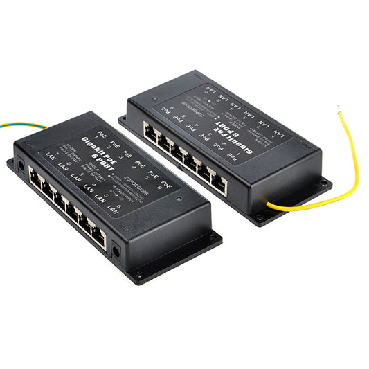 GPOE-6-AB 被动式中跨以太网供电器,6口千兆POE 注入器 Mode A Mode B 供电模式,适用于多种类型摄像头, 无线Wifi 接入点