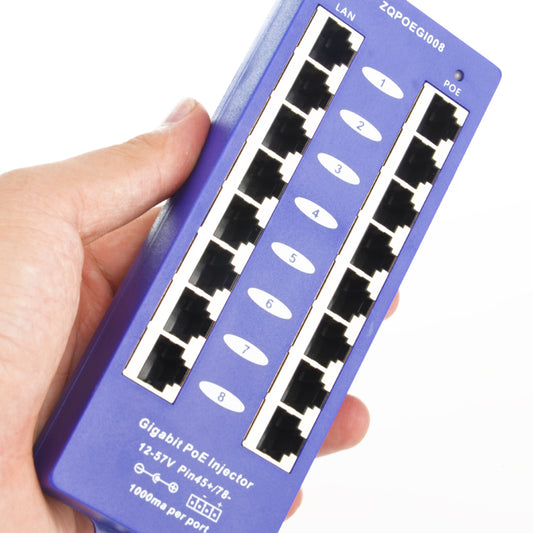 GPOE-8B 千兆以太网中跨注入器 Mode B 8 口被动式PoE供电器, 兼容802.3af 和24V PoE 设备