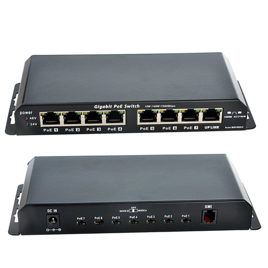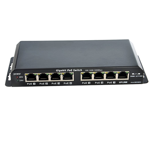 GPOES-8-7 非管理被动式千兆PoE 交换机,支持24V或 48V 输入,兼容802.3af PoE 设备,单个端口最大30W输出,电源另外配