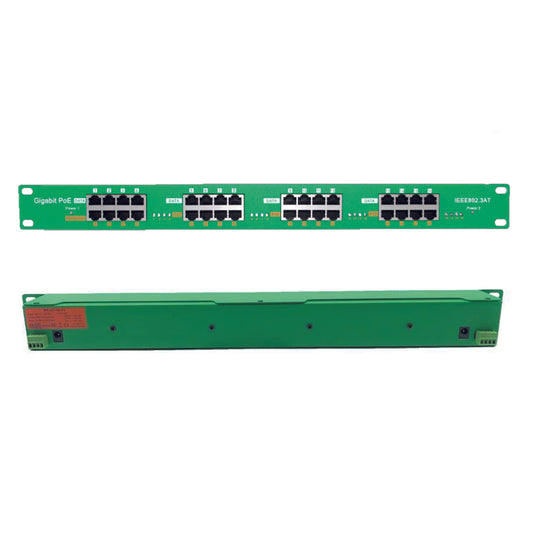 GPOE-24-PS24V 9寸1U机架式24口千兆被动式PoE供电器与24V电源套装. 120W, 240W 电源适配器可选,为24台24V PoE 设备供电