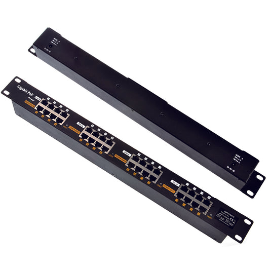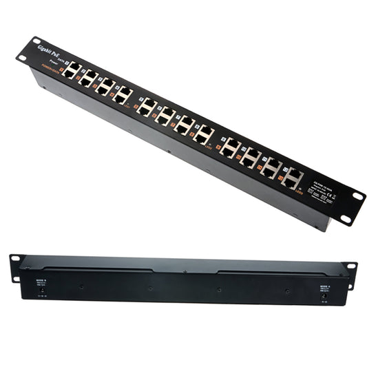 GPOE-16-PS24V 机架式16口千兆被动式PoE供电器与24V电源套装,为 Mikrotik、Ubiquiti 等24V被动式 PoE 设备供电