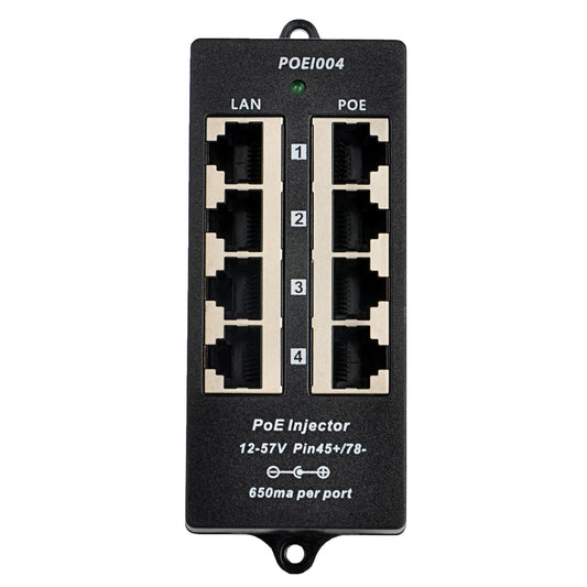 POE-4-PS24V60W 4口百兆PoE供电器带24V60W电源适配器,为Mikrotik、Ubiquiti 等需要24V PoE 的设备提供PoE供电